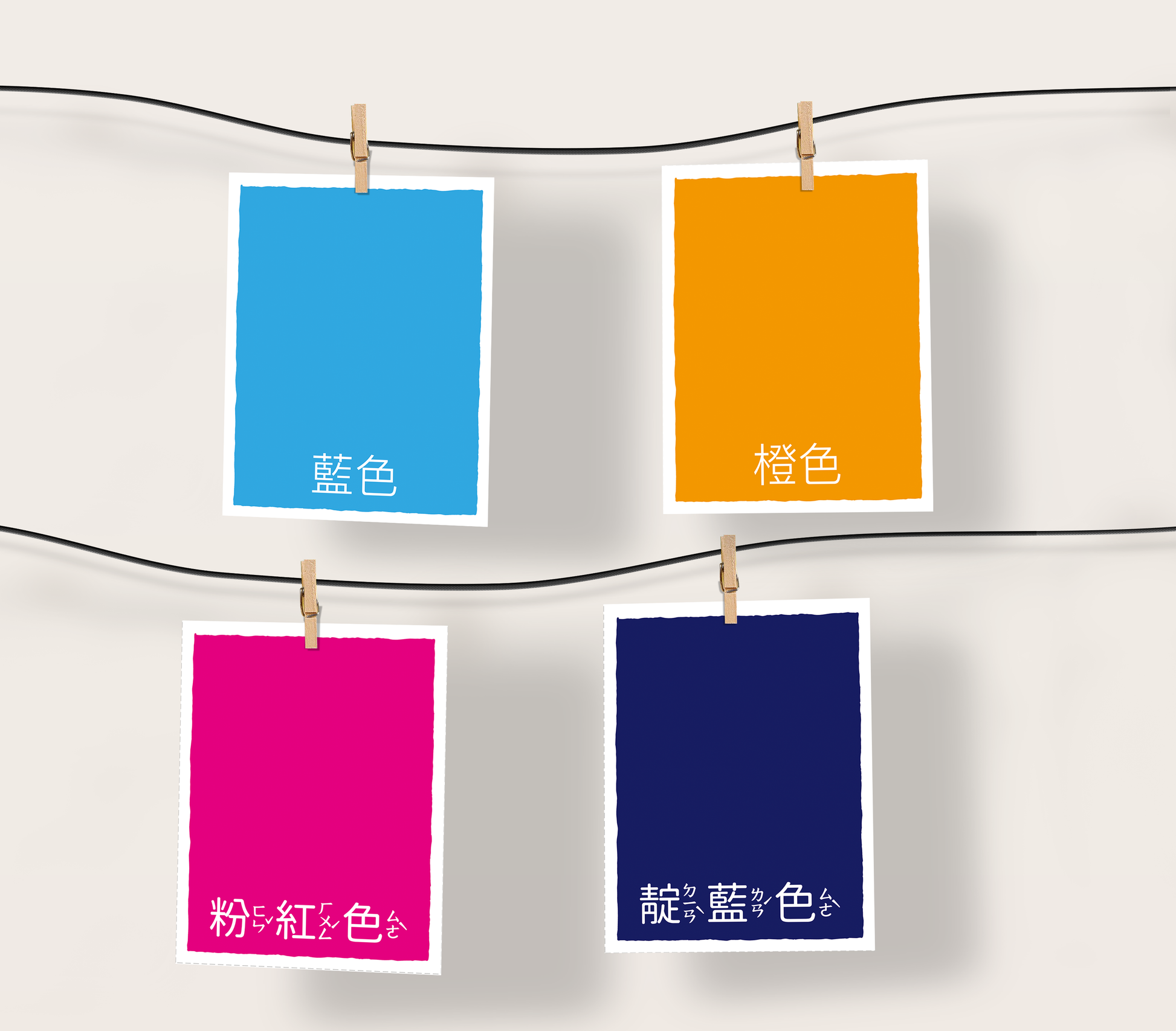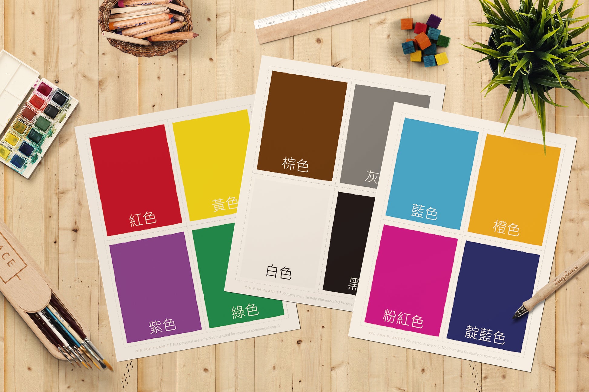 基本十二種顏色認知字卡,有中文字與中文注音字兩種。